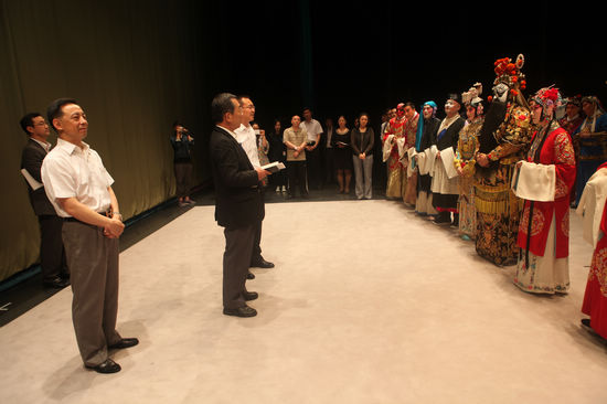 會(hui) 上帶來了院領導對出門在外的大家的問候,完全肯定了前一階段的演出成果,對後一階段的演出寄予了厚望。囑咐大家要保重身體(ti) ,出行要嚴(yan) 守時間觀念,藝術上要精益求精,生活上要互幫互助,學習(xi) 上善於(yu) 歸納總結記錄。要珍惜每一次實踐機會(hui) ,細節決(jue) 定成敗。全團人員牢記院領導的叮囑,不僅(jin) 做到了台上精益求精,台下仍然歸納總結,年輕人用自己獨特的方式提高業(ye) 務水平和實踐能力。當天中國駐劄幌總領事來到舞台看望了大家,對演出的圓滿成功表示祝賀。