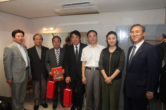 6月7日,全團冒著大雨轉戰群馬縣。因為(wei) 當日又是兩(liang) 場演出。晚上群馬縣副知事茂原璋男、群馬縣議會(hui) 議長須藤昭男、前橋市長山本龍、高崎市長富岡(gang) 賢治一齊來觀看了演出。在中場休息時,他們(men) 一同來後台拜會(hui) 了於(yu) 魁智副院長和李勝素團長,並合影留念。