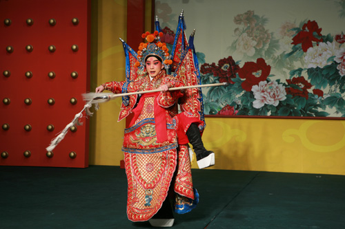 劇目簡介:《小商河》一劇取材於(yu) 〈說嶽全傳(chuan) 〉第五十三回,宋代,金兵再犯中原,嶽飛奉旨領令拒之,令楊再興(xing) 出戰。楊再興(xing) 乘學雪馳至小商河與(yu) 敵大戰;而河水未凍結,又被雪掩蓋,楊追敵心切,不幸馬餡河中,難以自拔。被敵兵亂(luan) 箭射死。