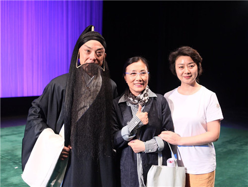 香港著名表演藝術家汪明荃演出後與(yu) 於(yu) 魁智、李勝素合影