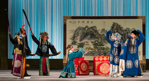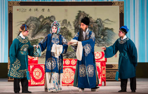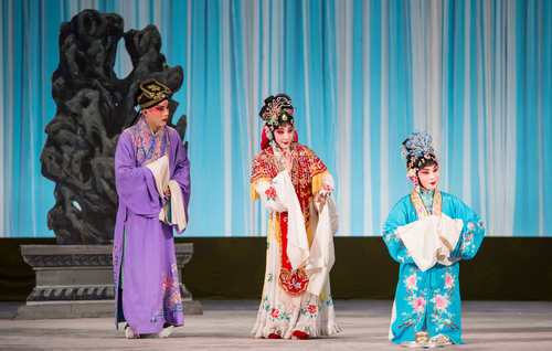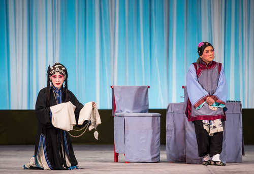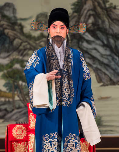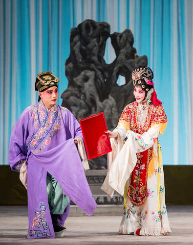 第一折是荀派代表劇《紅娘》中的“花園”一折。劇中紅娘由我院一級演員、靑京賽金獎獲得者張佳春飾演,張君瑞、崔鶯鶯分別由青年演員白洋、訾睿飾演。崔夫人由一級演員畢洋飾演。“花園”這折戲劇情幽默,唱腔經典,贏得了觀眾(zhong) 的陣陣掌聲。