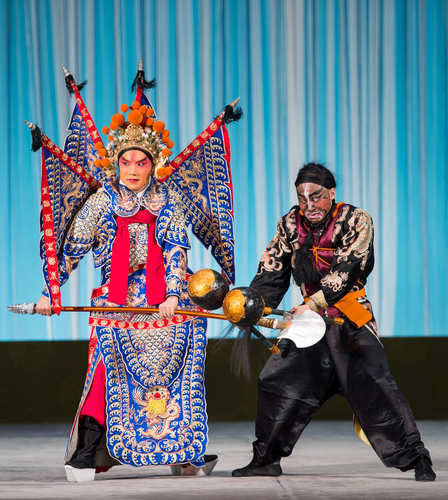 第四折《挑滑車》是一出經典的長靠武生戲。特邀上海京劇院一級演員奚中路、我院青年演員郭曉磊共同飾演高寵。一級演員劉魁魁飾演金兀術,嶽飛特邀大連京劇院演員王墨飾演,黑風利由我院青年演員徐明遠飾演。為(wei) 了培養(yang) 青年演員,一團特意送郭曉磊遠赴上海,向奚中路學習(xi) 了《挑滑車》這出戲。這次奚中路又帶領著曉磊共同演出此劇,在藝術家的悉心指導下,助推了青年演員的成長。